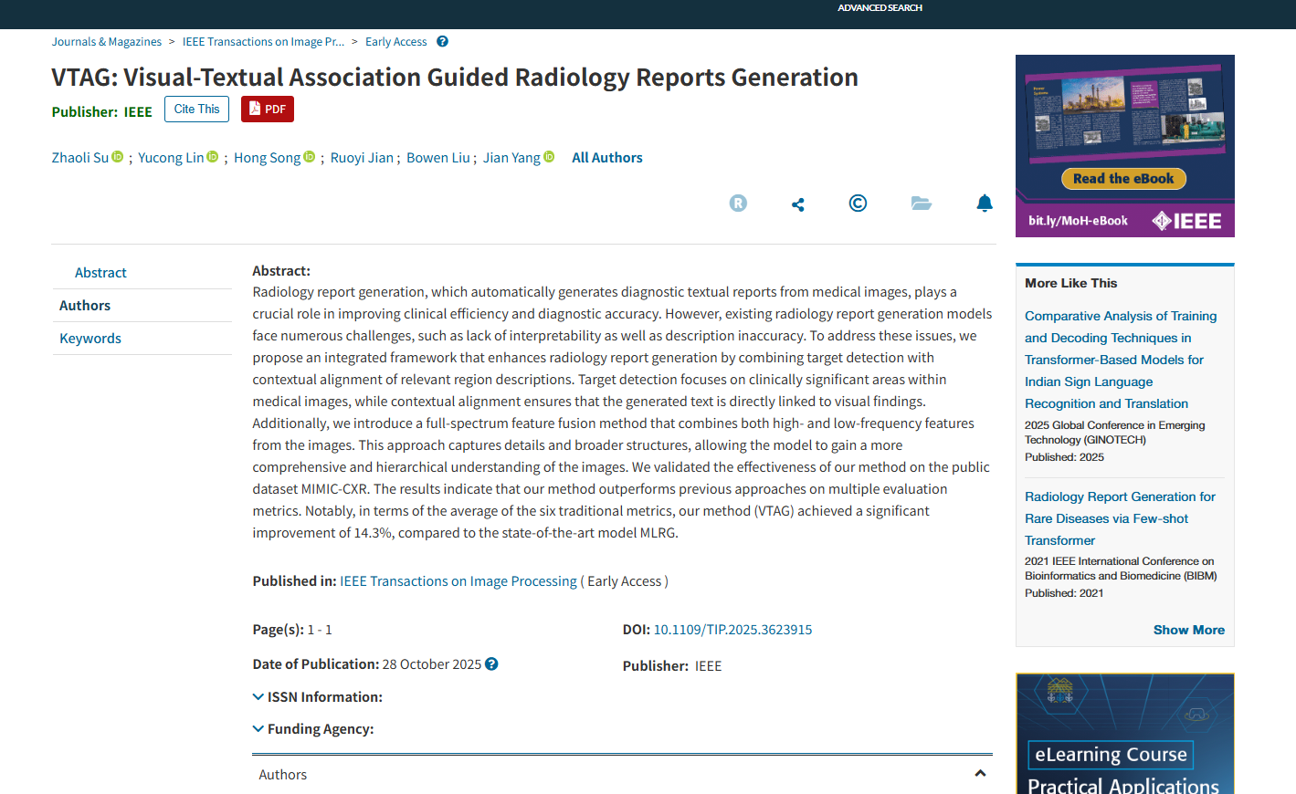 北理工光电学院杨健、王涌天教授科研团队在医学影像报告智能生成方面取得新突破